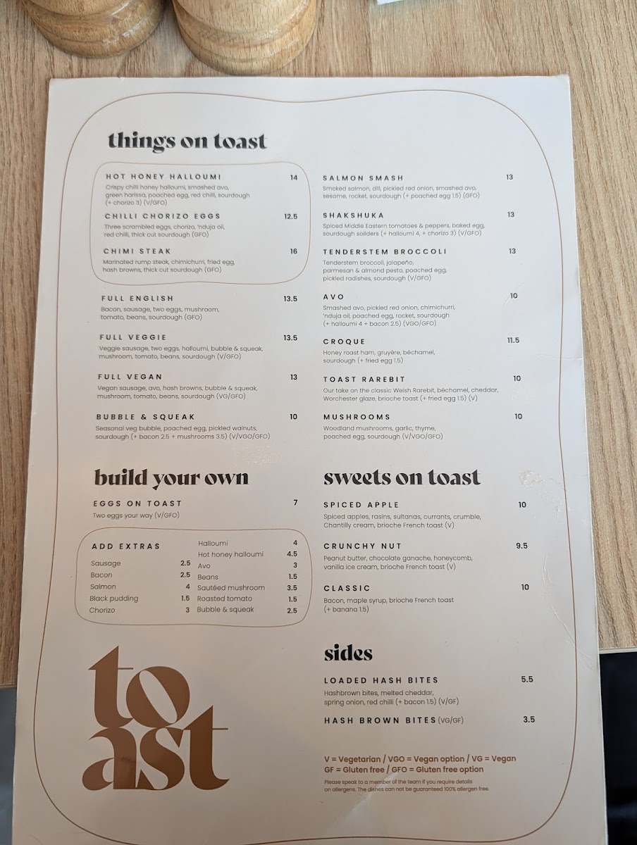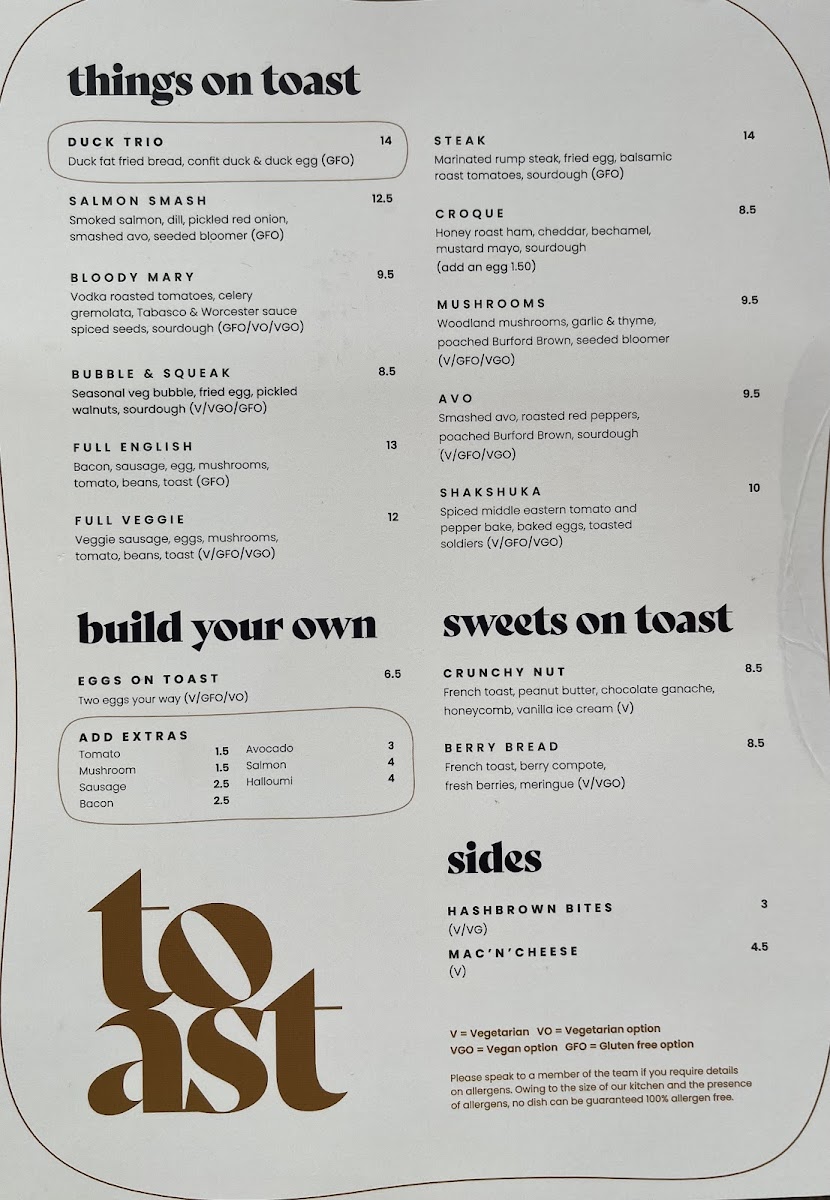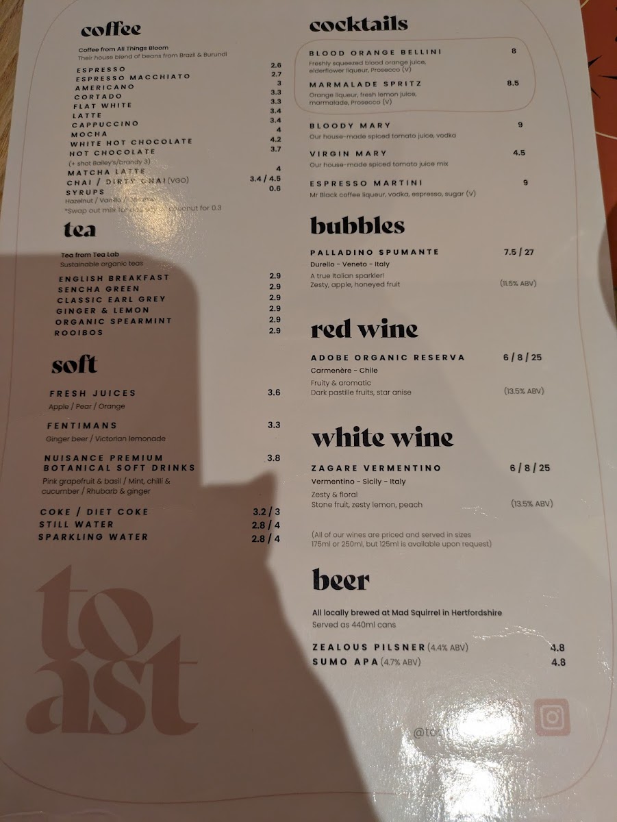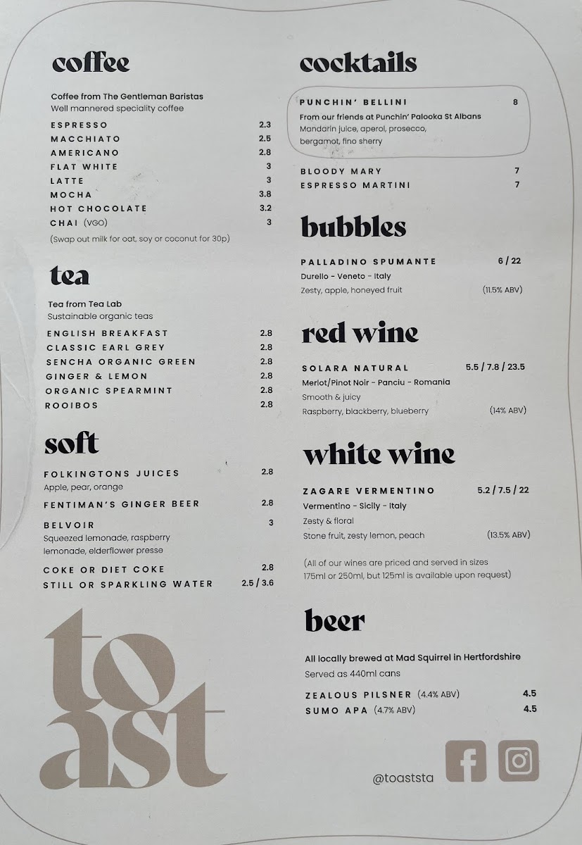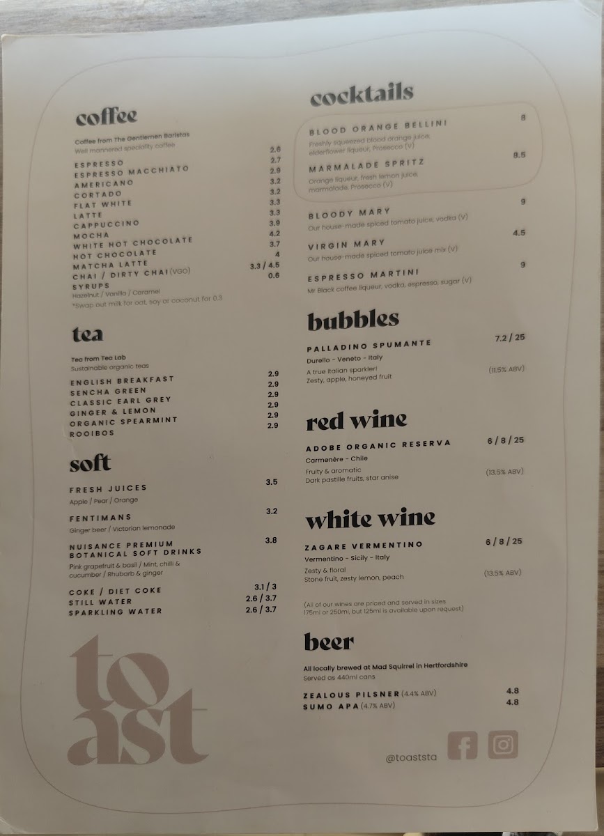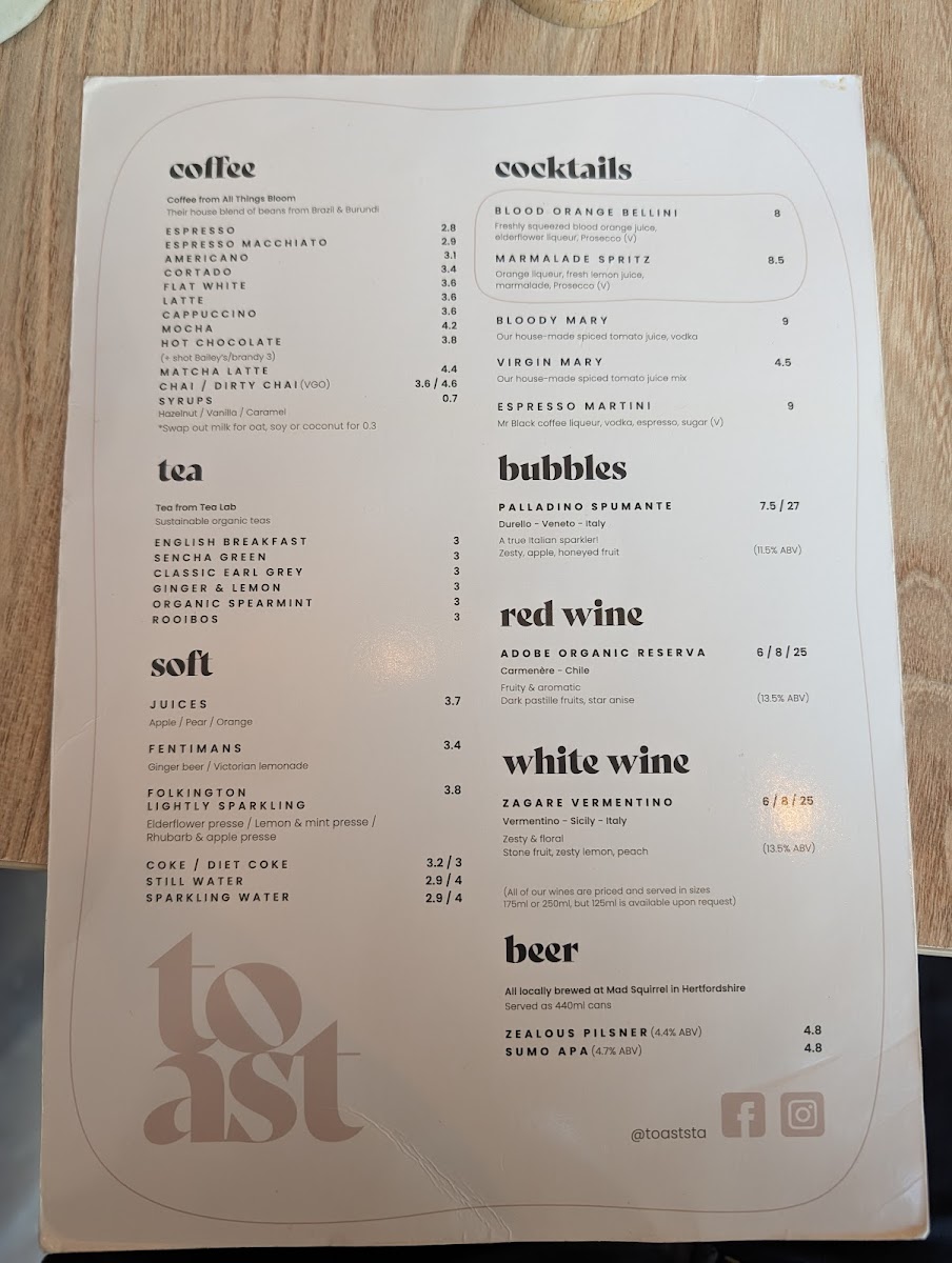 In conclusion, Toast St Albans offers a diverse and delicious menu, perfect for any time of day, with something for everyone-from savory to sweet, refreshing to warming, and everything in between.
